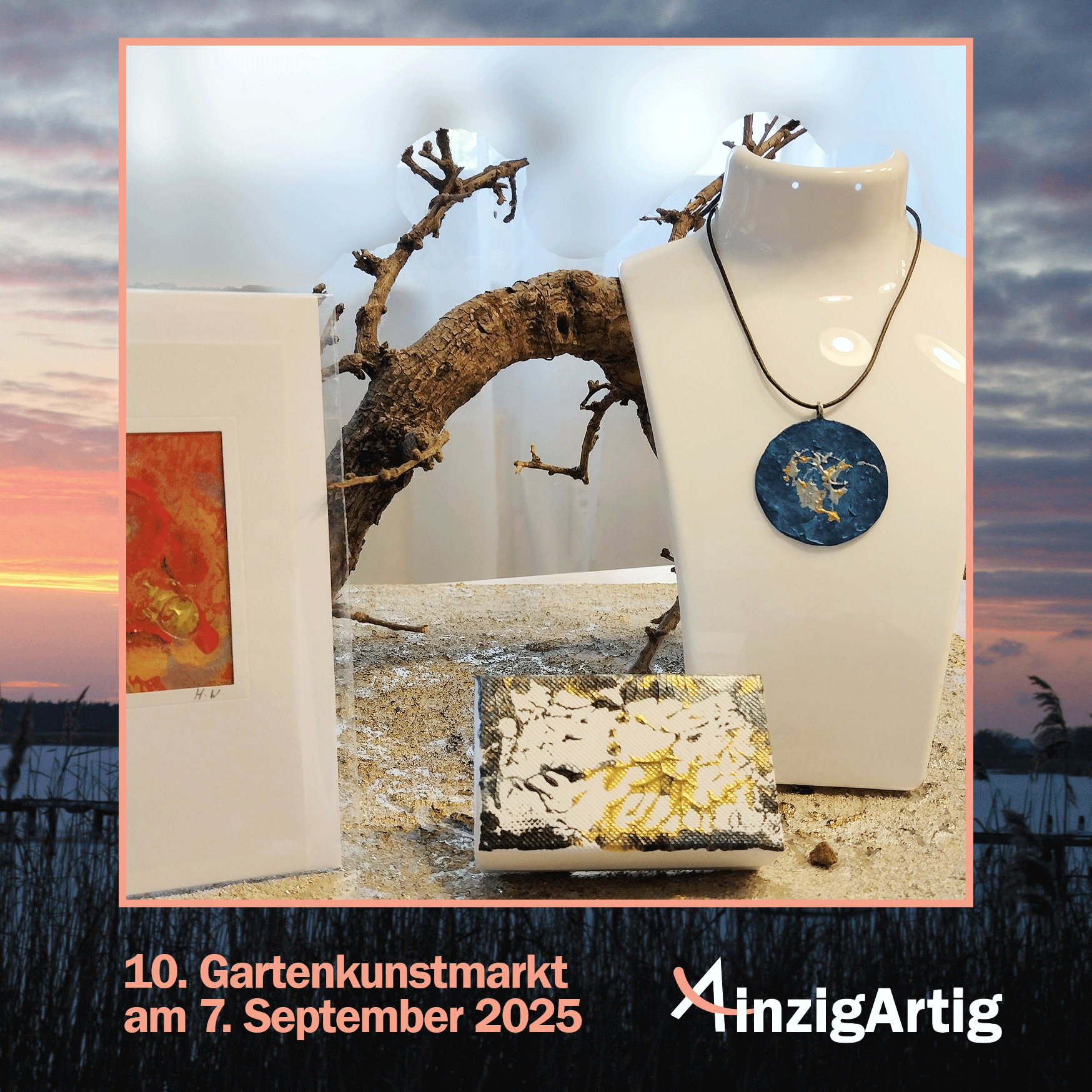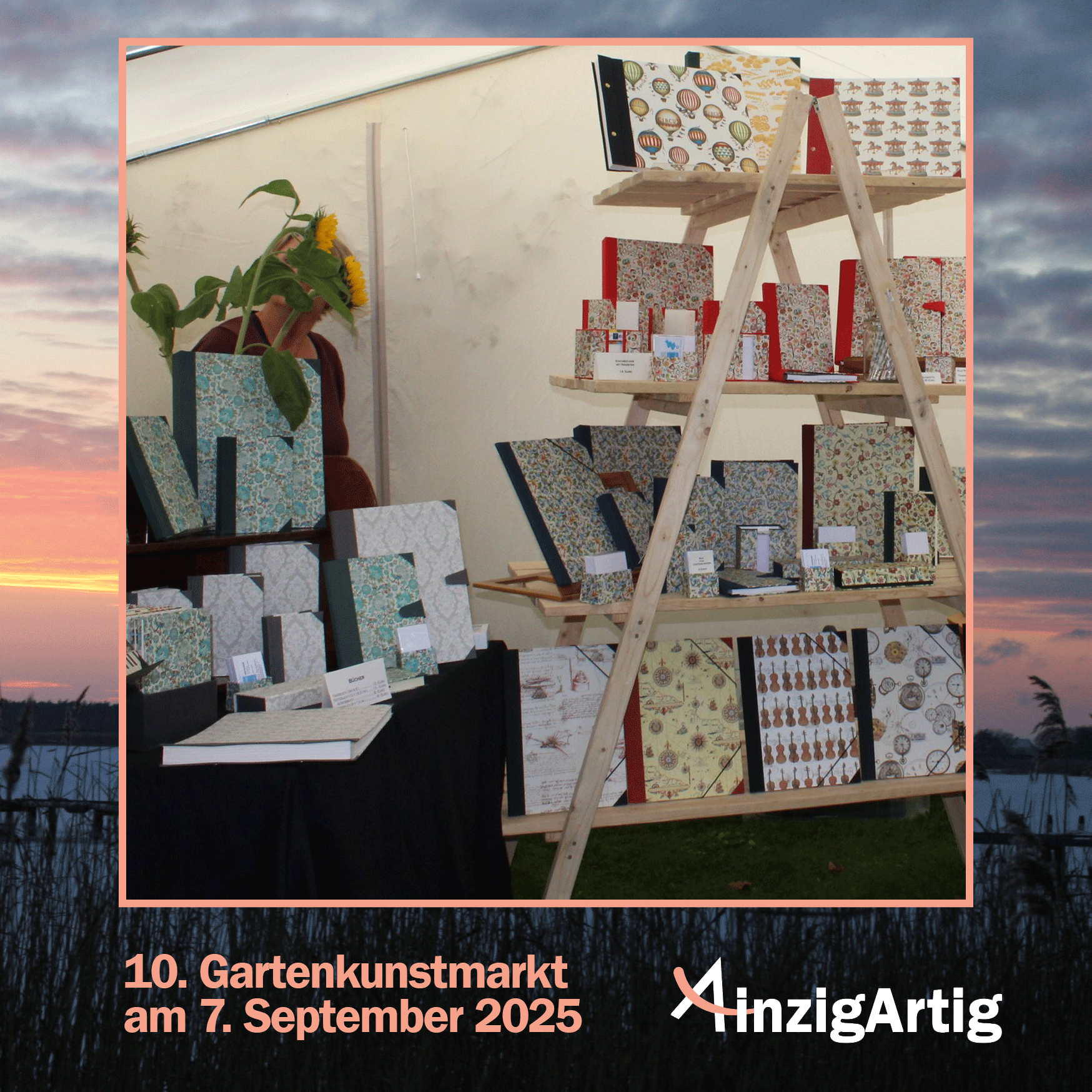 Ihre beeindruckenden Bilder aber auch ihre kleinen liebevollen Einzelstücke in Form von Kunstkarten, Geschenkboxen oder sogar Schmuck könnt ihr auf meinem Gartenkunstmarkt bewundern und käuflich erwerben.
